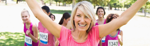 Photo: Happy women in pink t-shirts at running race