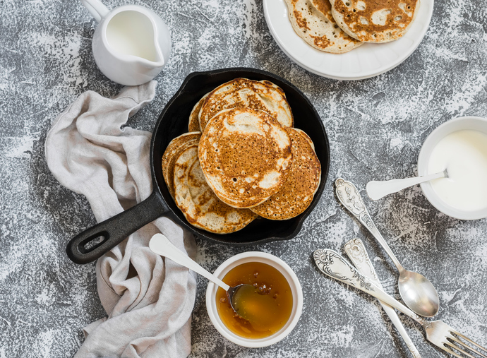 3. Pour by 1/4 cup in skillet and cook 1-2 min per side.