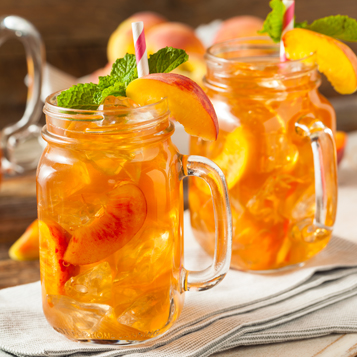 1. In a small saucepan, boil sugar, peach, and 1/2 cup water. Reduce heat and crush peaches to infuse flavor. Cover, remove from heat, and let steep for 25 minutes.