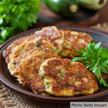 - In a large bowl, combine zucchini, flour, Parmesan, garlic and egg.